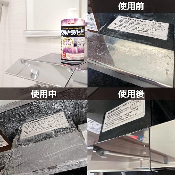 〈使えないもの〉曇り止め加工等の特殊加工された鏡、ガラス以外の鏡、すりガラス、 樹脂製の浴そう・浴室床・浴室壁、樹脂製の便器、フッ素・樹脂加工面、塗装面、 プラスチック製品、木製品、石材(人工大理石を含む)、光沢のあるステンレス製品、 漆器、銅・アルミ等の柔らかい金属、金銀等の貴金属製品、金銀等の線模様入り 陶磁器、自動車、水がしみ込む物 ※必ずゴム手袋等の保護具を着用してください。①内容液が分離する場合があるので、よく振ってください。②汚れに直接かけるか、キッチンペーパーや布、スポンジ(過度に柔らかい道具を使うと、本来の洗浄力が得られない場合があります)等に含ませ、こすり洗いします。③洗剤成分が残らないように、充分に水で洗い流すか水拭きします。※ひどい汚れには、厚めに塗り広げて1~2分置いた後、こすり洗いすると効果的です。それでも汚れが残る場合は同じ作業を繰り返してください。※材質によっては傷がつくことがあるので、必ず目立たない所で試してからお使いください。※内容液が分離しても品質には問題ありません。※汚れの程度によって落ちないものもあります。 続きを見る
