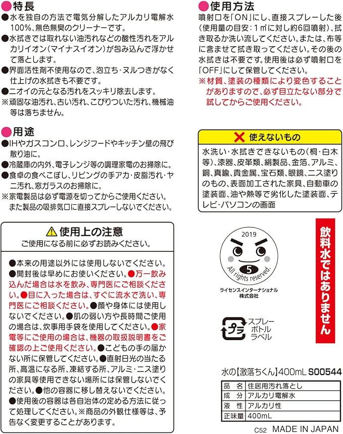 ●水なのにパワフル! アルカリ電解水100%のクリーナーです。