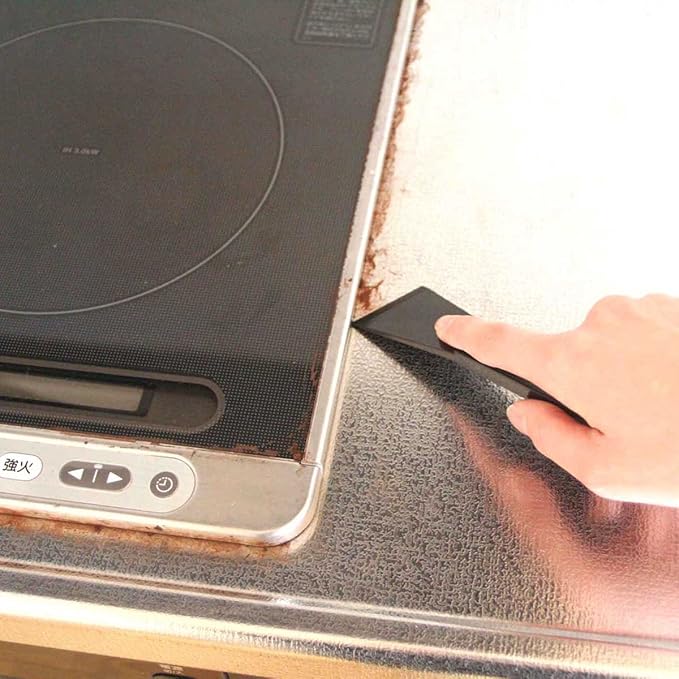 ガスレンジの周り、鍋などにこびり付いた汚れを、キレイにこそぎ落とせる