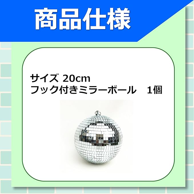 【✨パーティーを華やかに演出✨】 直径20cmのミラーボールは、置き型でも吊し型でも使用可能!360度に広がるキラキラの反射光が、お部屋や会場を一気に華やかにします。ディスコやクラブの雰囲気を演出したい方や、結婚式・誕生日・イベントのデコレーションにも最適です。 【 フック用リング付きで簡単設置 】 フック用リングが付属しているので、天井や壁に簡単に吊るせます。チェーンやフックを使えば、しっかりと固定でき、回転モーターと組み合わせると本格的なミラーボールの演出も可能!手軽にパーティー空間を作れます。 【 光を反射して幻想的な空間を演出 】 ミラーボールの表面には高品質なミラーガラスを使用し、光を受けると無数の反射が生まれます。LEDライトやスポットライトと組み合わせれば、幻想的な光の演出が可能!お部屋やイベントをより印象的に彩ります。 【 インテリアや撮影小物にもおすすめ 】 パーティー演出だけでなく、ミラーボールはインテリアや撮影小物としても活躍します。おしゃれな空間作りや、SNS映えする写真撮影にもぴったり!カフェやショップのディスプレイにもおすすめです。 【 さまざまなシーンで活躍 】 ディスコやクラブ風の演出はもちろん、ホームパーティーや結婚式、ダンスイベントなど、幅広いシーンで活躍。お部屋のアクセントとしても使え、アイデア次第で楽しみ方は無限大!置き型でも使えるので、自由なスタイルでお楽しみください。