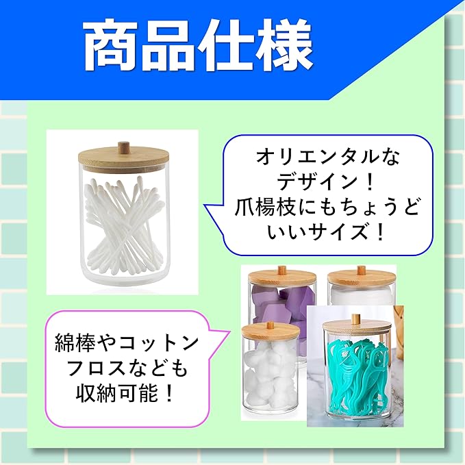 【✨高級感のある綿棒、爪楊枝ケース、フロスホルダー✨】 シンプルでスタイリッシュなデザインの綿棒ケース。透明プラスチック製で中身が見やすく、フタ付きなのでホコリを防ぎ、衛生的に保管できます。綿棒や爪楊枝デンタルフロス、コットンパフなどの収納に最適。コンパクトなサイズで、キッチンや洗面所、ドレッサー、デスク周りにスッキリ収まります。 【 高級仕様&シンプルデザイン 】 無駄のない洗練されたデザインで、どんなインテリアにも馴染む高級仕様。透明な素材を採用し、中身が一目でわかるため、取り出しやすさも抜群。シンプルながらも上品な雰囲気で、化粧品や美容アイテムをスマートに収納できます。 【 ホコリを防ぎ清潔に保管 】 フタ付きの設計でホコリや汚れからしっかりガード。洗面台やドレッサーに置いても、中の綿棒やコットンを清潔に保つことができます。フタは開け閉めしやすく、毎日の使用が快適。 【 コンパクト&大容量収納 】 コンパクトなサイズながら、綿棒やフロス、コットンパフ、ヘアアクセサリーなどをスッキリ収納可能。省スペース設計で、限られたスペースでも邪魔になりません。持ち運びやすいので、旅行や外出先でも便利に使えます。 【 多用途でさまざまなシーンに対応 】 綿棒やフロスの収納だけでなく、コスメ、アクセサリー、ヘアピン、薬、クリップなどの小物入れとしても活躍。洗面所、リビング、オフィスなど、さまざまな場所で使える便利な収納ケースです。