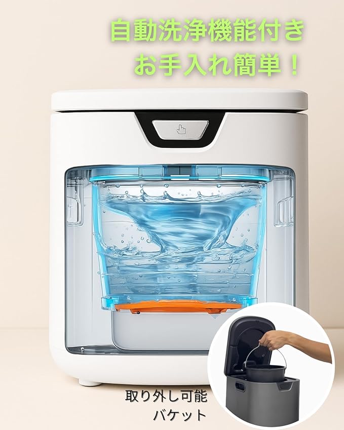【活性炭フィルター2個と自動洗浄機能】 2個取り替え可能なフィルター付き。活性炭の力で脱臭&除湿し、強力脱臭システム搭載、イヤな臭いがほとんどしない。自動洗浄より、処理機の内部はいつも清潔に。