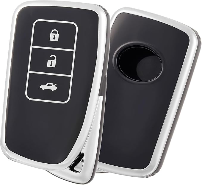 [OFF WE GO] レクサス スマート キーケース LEXUS GS IS NX RC RCF RX LX 等に適用 3ボタン LEXUS 車用 リモコンキーカバー 高級 TPU レクサス キーシェル 軽量 全面保護 汚れ、傷防止 落ちにく - ブラックシルバー