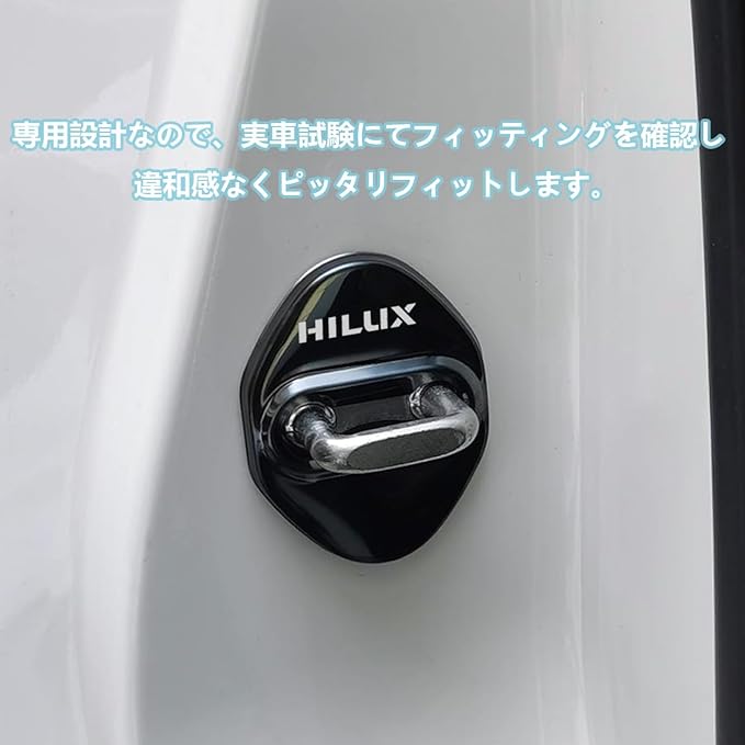 トヨタに適用 ハイラックス(HILUX) GUN125 120系(2017年9月~) に適合 ドアストライカーカバー専用 ドアロックカバー ステンレスカバー 簡単取り付け メタリック 4個セット