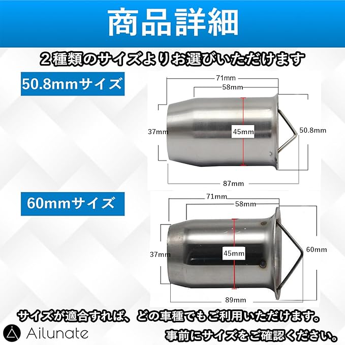 Ailunate インナーサイレンサー バイク バッフル マフラー 触媒 消音 型 汎用 音量 調整 消音器 騒音対策 ステンレス 差し込み (50.8mm用)