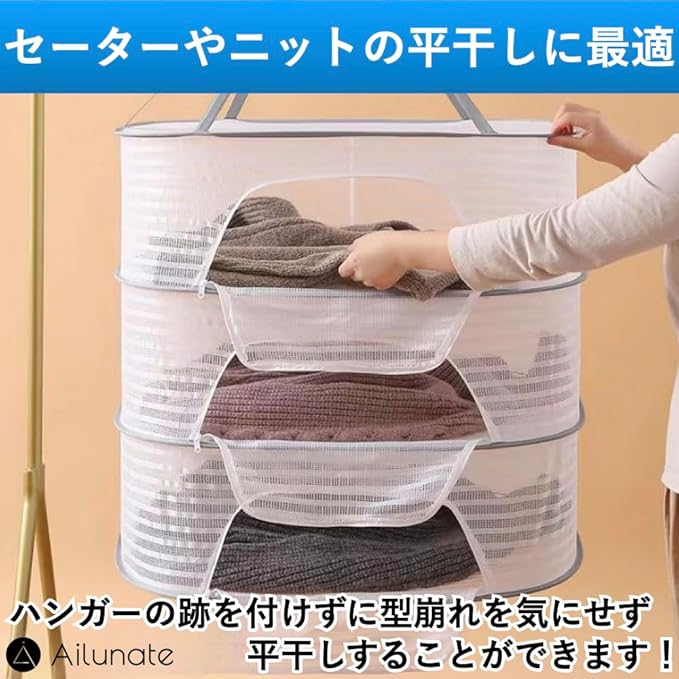 ✅【セーターやニットの平干しに最適】型崩れしやすいセーターやニットを平置きで干したり、乾燥させることが可能です。平干しネットを使うことで、ハンガー跡や洗濯バサミ跡がつくのを防ぎ、衣類の型崩れや伸びも防ぐことができます。