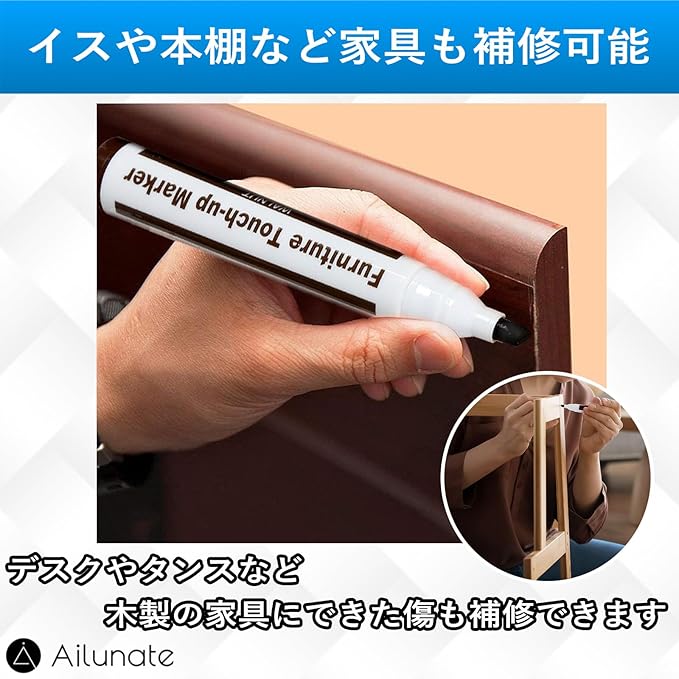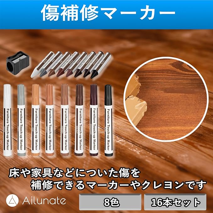 Ailunate フローリング 補修 傷 ペン マーカー 傷補修 床 キズ消し キズ隠し 補修ペン 木製家具 剥がれ 穴補修 8色入り 16本セット