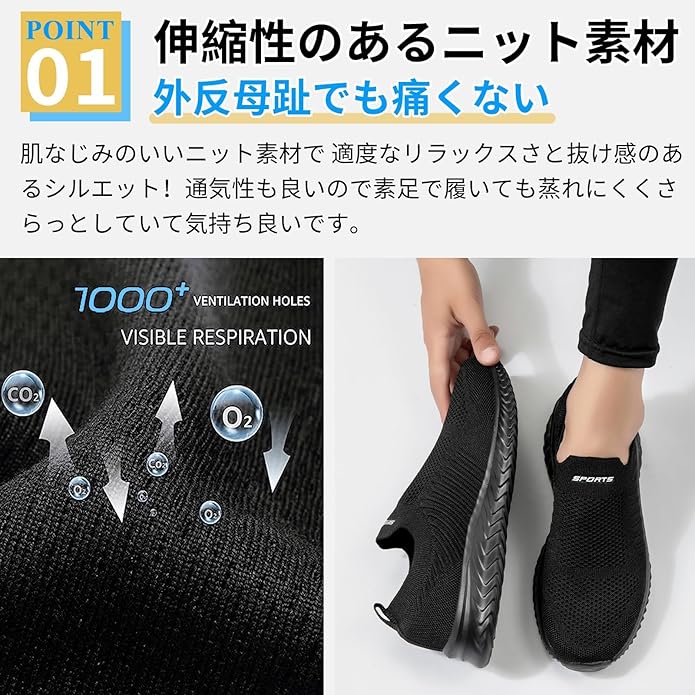 [STRDEOUT] 【創新版快適設計】スリッポン メンズ レディース 紐なしスニーカー メッシュ 靴 ウォーキングシューズ 室内シューズ 上履き大人 履きやすい 白 黒