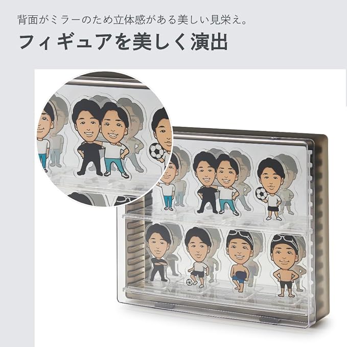 ●背面ミラー付きで奥行き感を演出し、6枚の棚板はフィギュアの高さに合わせて自由にレイアウト変更が可能。