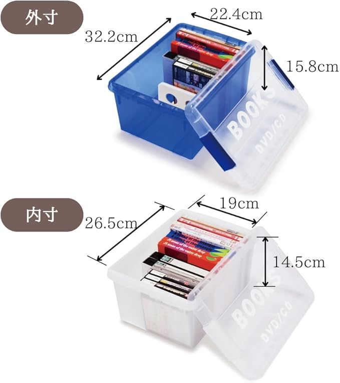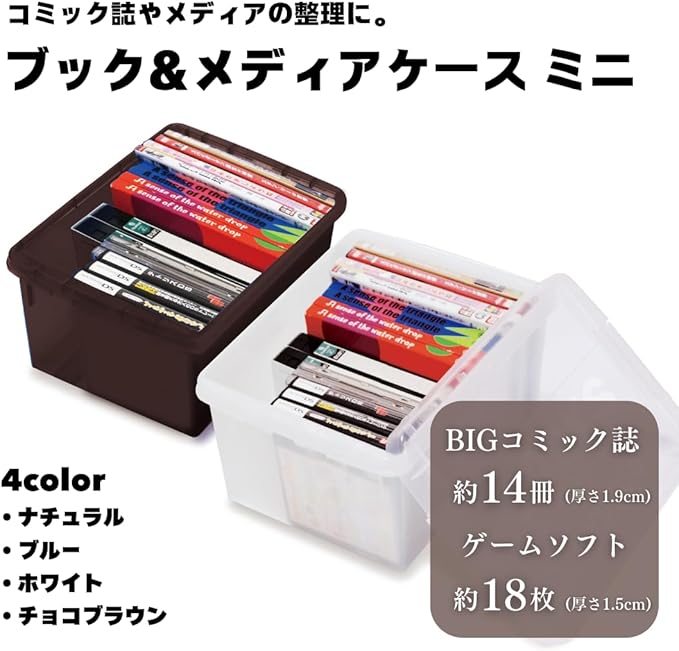 ベッド下やクローゼット収納に最適。透明のフタでタイトルや中身が見えます。