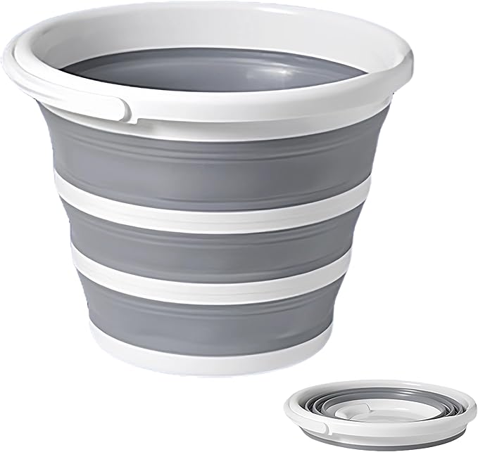 折りたたみバケツ 10L 大容量 厚手 丸型/四角型 多機能 洗濯 洗車 足湯 釣り コンパクト収納 PP+TPR素材 グレー/ホワイト (丸型)