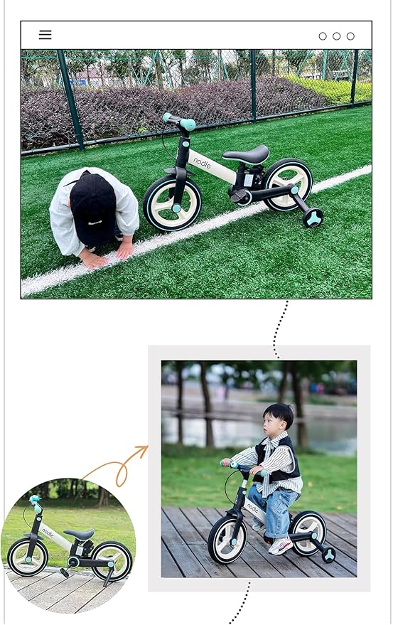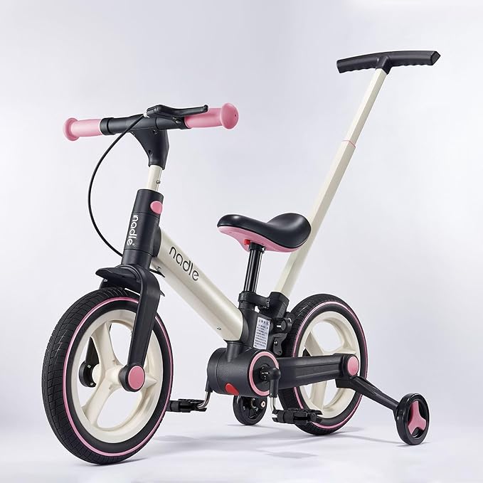 【一台五役】キックバイク、補助輪付きキックバイク、押し棒付き三輪車、自転車、補助輪付き自転車、4つの楽しみ方で、お子様の成長に合わせて変身できるので、長くご使用いただけます。