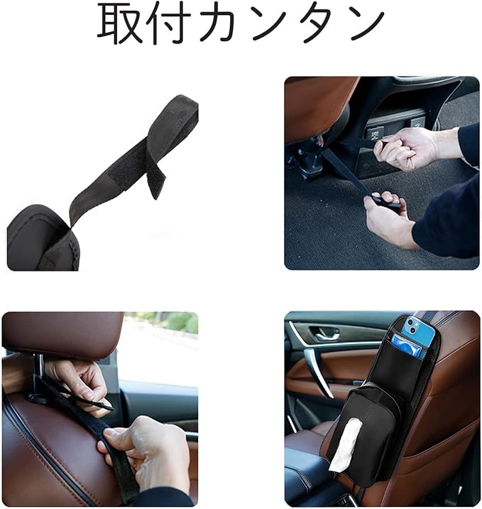 シートサイドポケット 車用収納ポケット シートポケット ティッシュケース (黒)