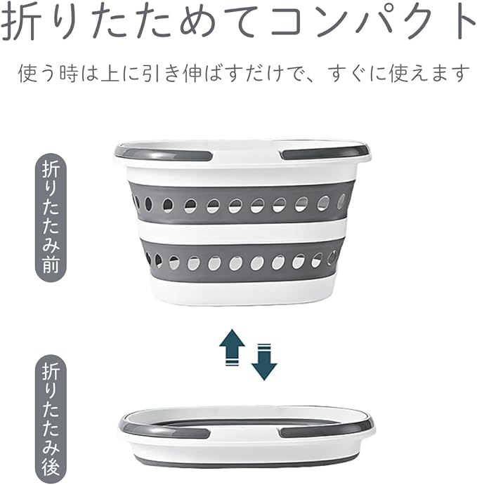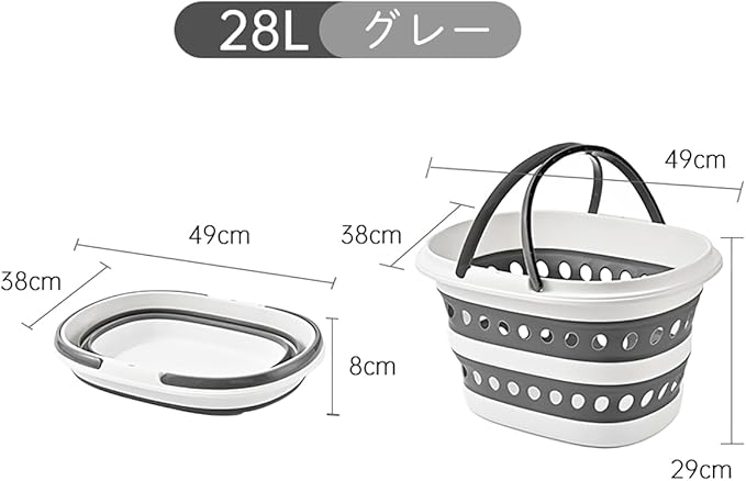 折りたたみ ランドリーバスケット 16L/28L ランドリー収納 洗濯 おしゃれ (グレー, 28L)