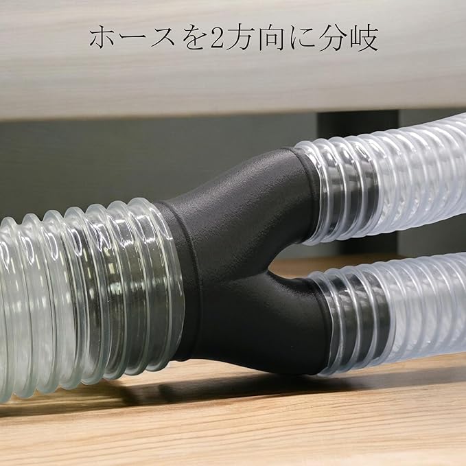 「二方分岐管 ProFit」は、流体力学に基づいた最適形状を採用。一本のホースの流れを効率的に二方向へ分配し、集塵システムの効果を最大化します。特別な工具不要で、手軽に設置可能です。 空気の流れを最適化し、集塵システムの性能を向上させる「二方分岐管 ProFit」を、ぜひご活用ください。 本製品を安全にご利用いただくため、集塵経路の設計時には適切な対策を行ってください。