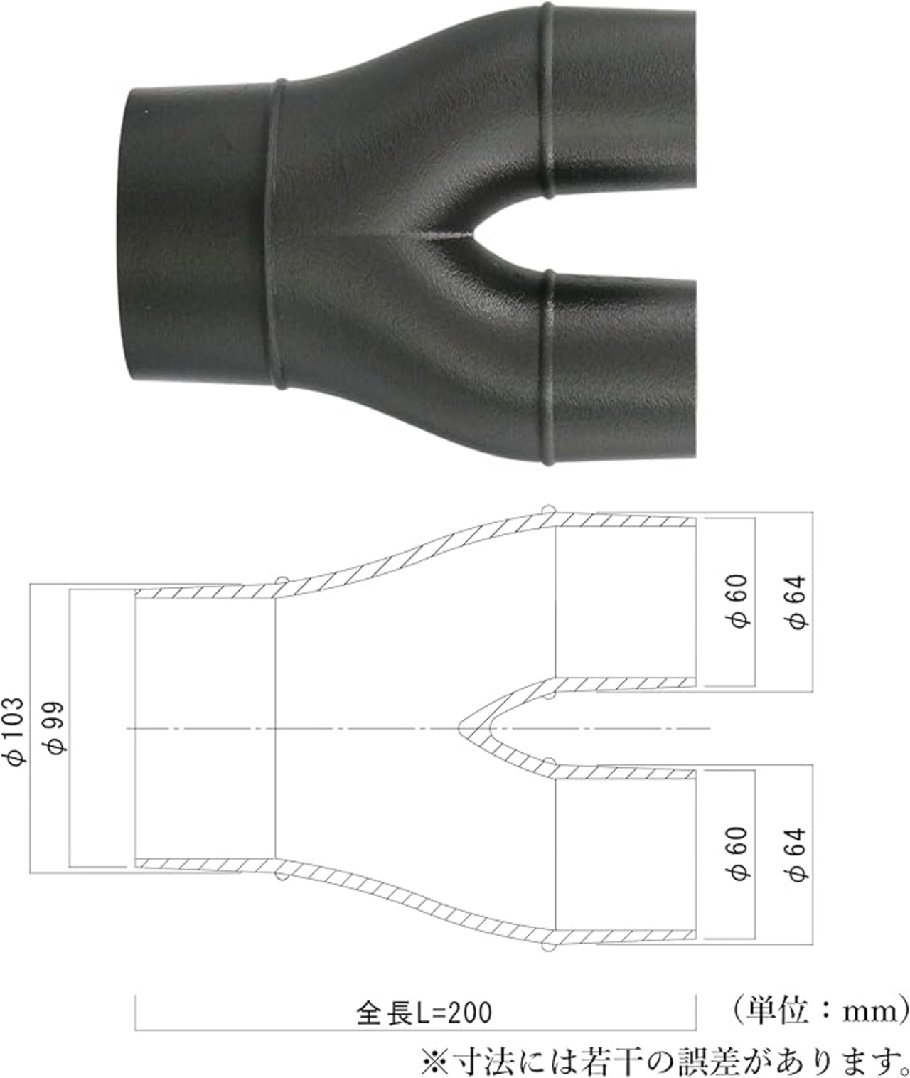 二方分岐管 ProFit 集塵 木工 DIY 異径タイプ (100φ-65φ 2)