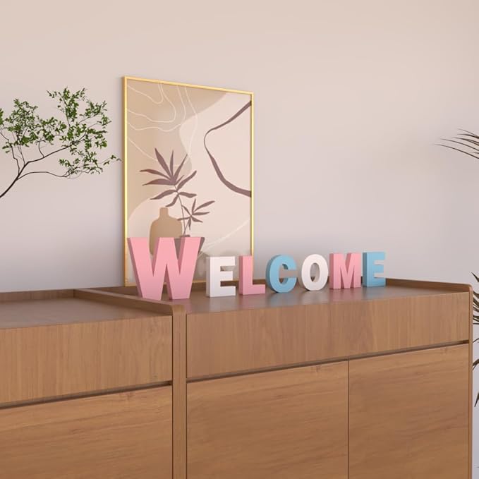 WELCOME PVC製 モダンシンプル ウェルカムレターオブジェ 玄関デコレーション パーティーアクセント ピンクブルーホワイト インテリア飾り 英語文字オブジェ ホームデコ ギフトアイデア