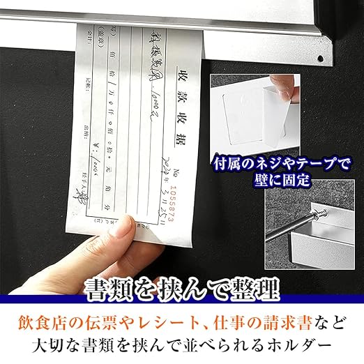 【セット内容】伝票差しホルダー 1点 両面テープ 2枚 ネジ 2本 ネジアンカー 2本 【サイズ(約)】30cm 4.7cm 【カラー】シルバー 【材質】ステンレス
