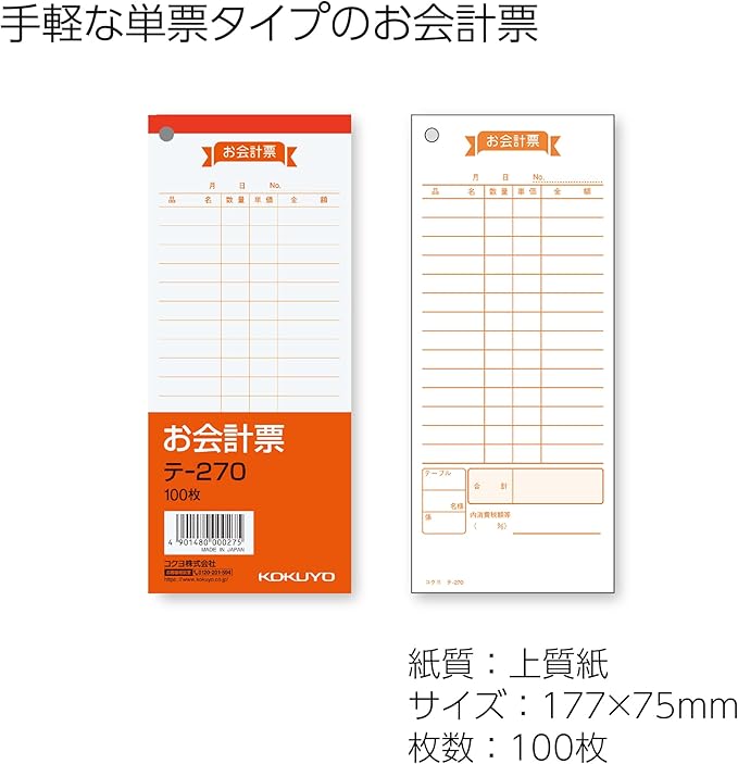 コクヨ お会計票 サイズ大 100枚 テ-270