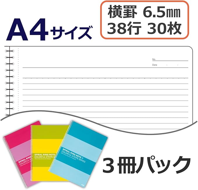 科目別・プロジェクト別に色分けして使いたい方、周りの人と分けて使いたい方にお勧め。明るく元気なデザインのパックノートです。●普段A罫(7mm)、B罫(6mm)を使用しているどちらの方にも使い勝手の良い6.5mm横罫を採用。●きれいに切り取って提出や保管ができるマイクロミシン目入りです。●A4ノートならプリント貼りも簡単。学校で配られるプリントも、大きめのA4ノートで簡単に整理できます。