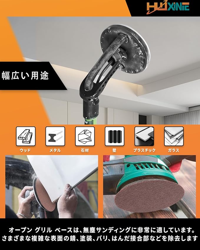 【多用途】木材、複合材、金属、プラスチック、家具の丸太、固体表面の塗装、下塗り、仕上げに適しており、鋭いサンディング特性により、金属のスケール除去、自動車のサンディングと研磨、木製の床、ガラス、大理石のサンディング、壁の粉体塗装に適しています,効率的で耐久性があるため、DIYプロジェクトやホームセンターでの作業に幅広く使える万能ツールです