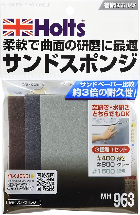 ホルツ 補修用品 研磨用スポンジ サンドスポンジ シートタイプ Holts MH963 #400 #800 #1500 3枚セット