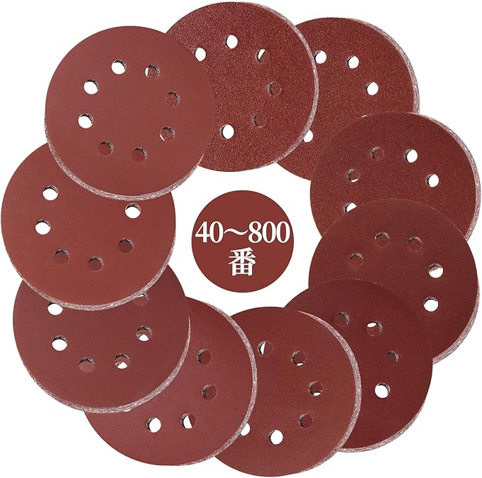 ランダムサンダー ペーパー 125mm サンドペーパー セット 40~800番 50枚入セット サンダー ペーパー マジック式 8穴 サンディングペーパー 丸型 サンディングディスク 電動サンダー用ディスクペーパー 木工DIY作業に 金属磨き 自動車整備 10種類 40 60 80 120 180 240 320 400 600 800 各5枚