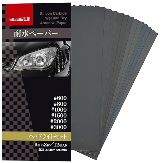 [ネセクト] 耐水ペーパーセット ヘッドライトセット(#600-#3000 12枚セット) サンドペーパー 耐水紙やすり 細目 極細目 超極細目 金属 木工 補修[日本国内企画品]