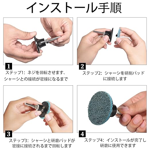 【研磨バフ 32枚セット】ブルー、レッド、ブラウン各10個,1個 ディスクブラケット ,1枚 円柱型アダプタ。時間も短縮でき綺麗に磨けるので重宝しています