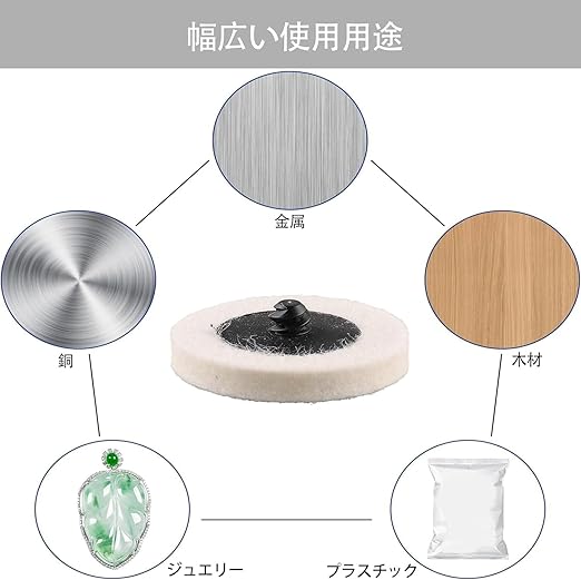 フェルト 研磨パッド使いやすい:羊毛フェルトバフはユニークな安全トルクネジがあり、ツールで簡単に取り外すことができます、丸い回転工具やサンダーポリッシャーの研磨に最適です