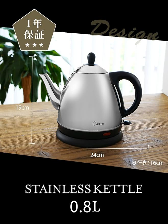 【コスパ最高のステンレスケトル】お手頃価格のステンレスケトルです。安いのに、安全・安心の設計でデザインもおしゃれ!家族で使う方だけでなく、ひとり暮らしの方や職場で使いたい方にもおすすめです。0.8Lですぐ沸くので、来客時にも対応できます。さらに、電気ポットよりも電気代を節約できて、経済的です。