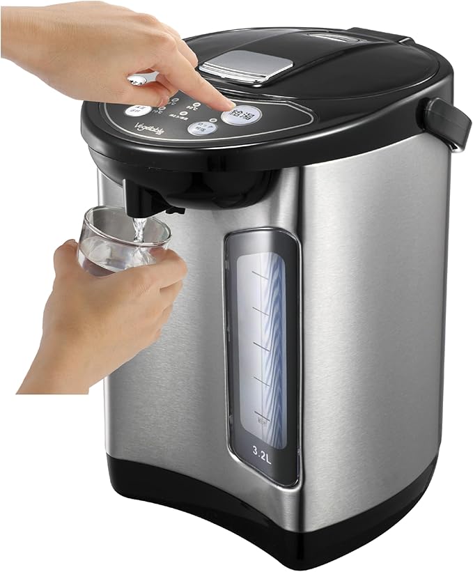 [Vegetable] 電気ポット 容量 3.2L 省エネ 3段階温度設定 シンプル操作の2WAY給湯 安心・安全構造 360度回転底 空焚き防止 電動給湯ポット ブラック/シルバー GD-UP320K