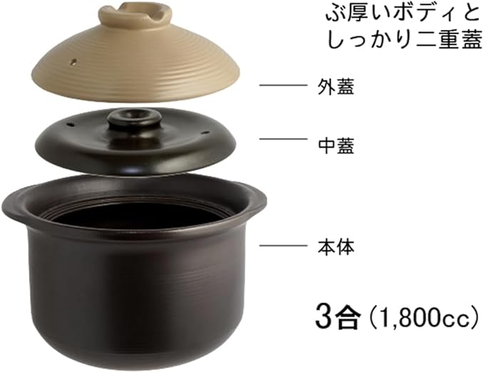 リビング(Living) ご飯鍋 1-3合用 1800ml 炊飯鍋 おいしいごはんや讃 110585