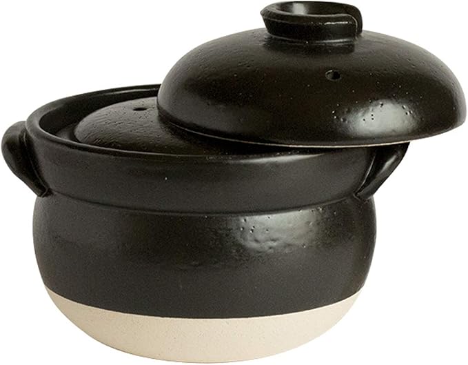 佐治陶器 ご飯鍋 黒 19.5cm 萬古焼 絶品 ごはん鍋 (中蓋付) 3合 30-1