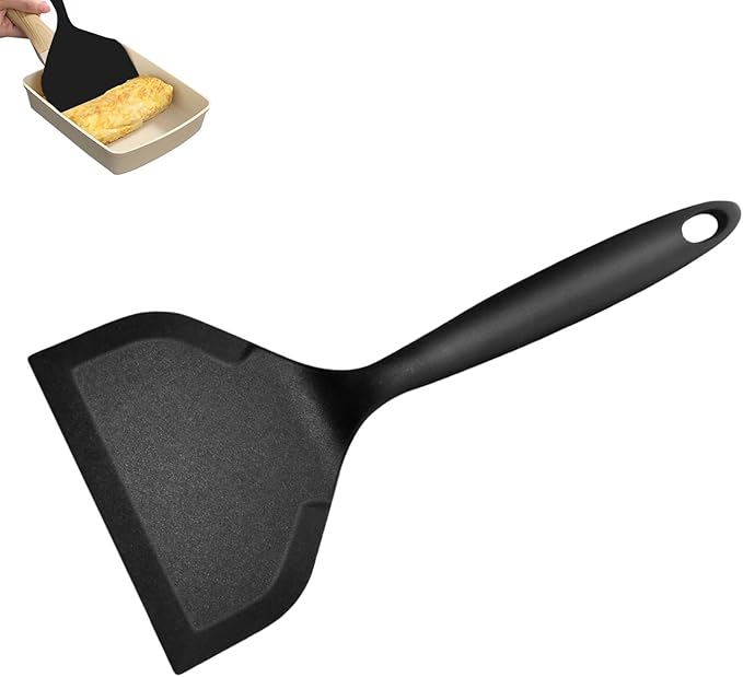 シリコンスパチュラターナー シリコン卵焼きスパチュラ フライ返し 料理用 シリコン 卵焼き シリコン ヘラ 料理用 調理器具 玉子焼き 卵焼きパンケーキ、サンドイッチ、ステーキ、魚用 (ブラック)