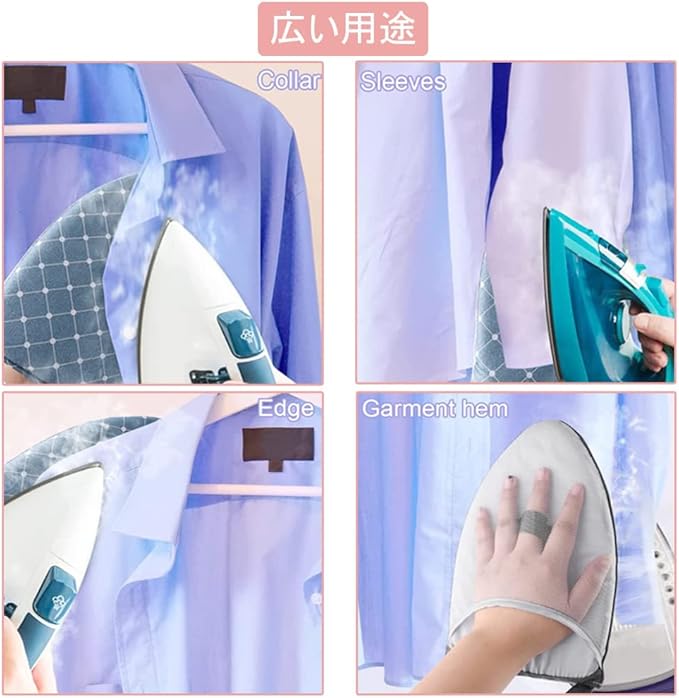 【広い用途】アイロン、衣類スチーマー、スチームアイロン使用可。ワイシャツの袖口、襟、胸ポケットはもちろん、リボン、はちまき、ヘアアクセサリー、 サッシュなどの小物のシワも素早くのばせます。家庭用、旅行、出張、アウトドアなどはいつでも使えます。