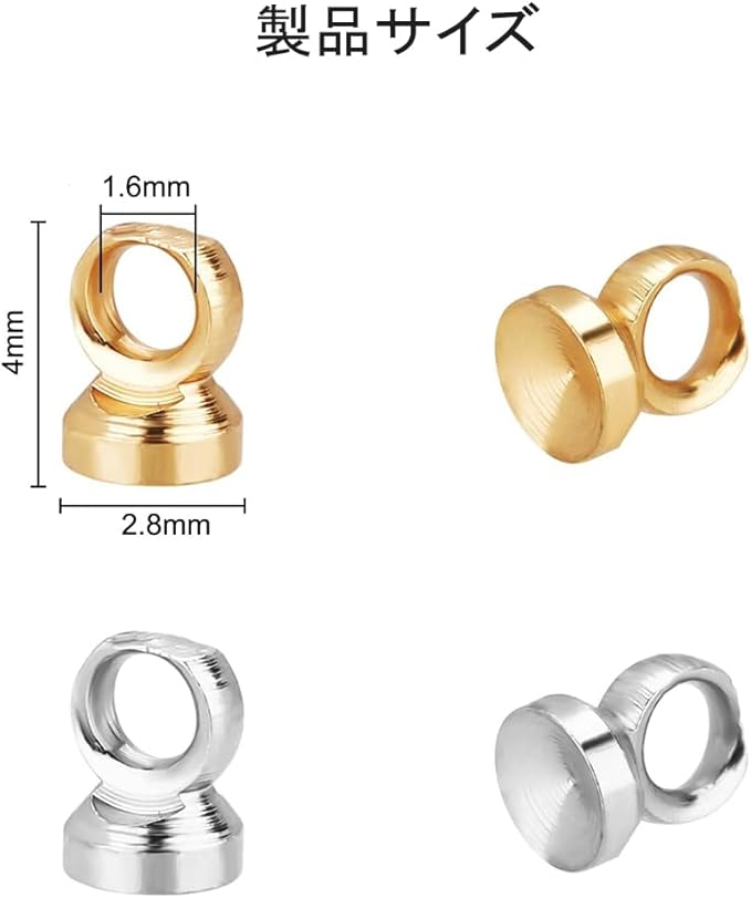 【使いやすさ】各ビーズキャップの上部には1.6mmの丸い穴があり、レジン液や接着剤で簡単に固定できます。穴を開ける手間が省けます。