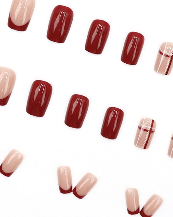 ネイルチップ 赤 ショート 24枚入 つけ爪 短め 付け爪 ワインレッド 可愛い 振袖 和風 つけづめ 秋冬 おしゃれ シンプル 人気 韓国 かわいい 繰り返し使える 花嫁 光沢 成人式 入学式 卒業式 結婚式 (短いタイプの赤色-14)