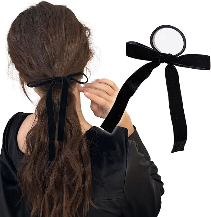 【製品サイズ】 ベルベットリボンの幅は約2cm、リボンの幅は約13cm、長さは約16cm、ヘアゴムの内径は約4cmと、ちょうど良いサイズ感です。しっかりとヘアスタイルを固定しながらも、過度に重くなったり煩わしく感じたりすることはありません。このサイズ設計は、日常のエレガントなヘアスタイル作りにも、フォーマルな場面にも対応します。また、軽量で携帯しやすく、バッグに簡単に収納できるため、外出先でのヘアアレンジにも便利なアイテムです。