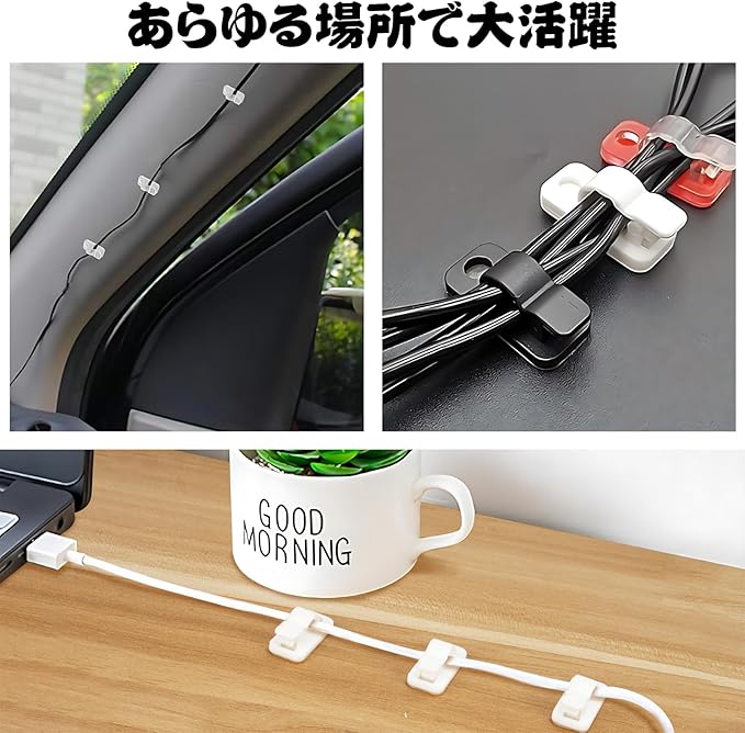 ケーブルクリップ ケーブルホルダー ケーブル まとめる コードクリップ 配線止め 強力 粘着 小型 壁を傷つけない 白 収納 固定 ネジ止め 車 壁