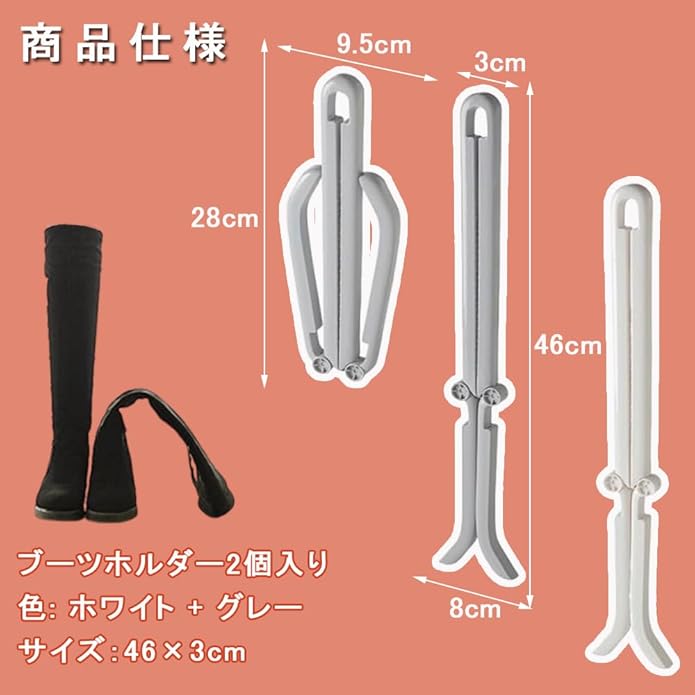 [KALOLINNA] ブーツキーパー クリップ 靴 ブーツ形状リテーナー 2個セット ブーツスタンド 折りたたみ式 変形防止 消臭 ロングブーツ 長靴 ブーツシェイパー ブーツ収納ホルダー 長さ46cm