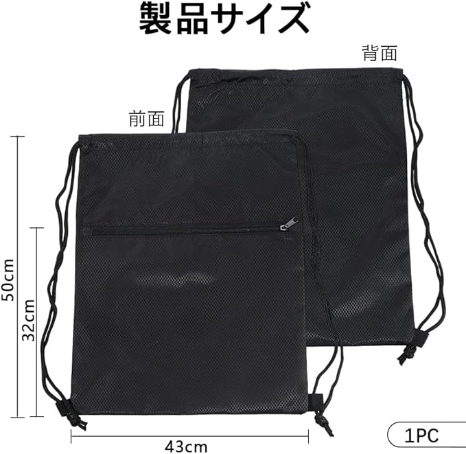 【防水性を考慮した作り】撥水加工の生地を採用しており、小雨や汗の湿気から内部の荷物を守ります。汚れが付着しにくく、お手入れも簡単です。 【たっぷり収納できるサイズ】約50 43 1cmの広めのメインポケット。A4サイズの書類もすっぽり収まり、着替えやシューズ、タブレットなどさまざまな荷物の収納に便利です。開口が広いため出し入れも楽に行えます。 【使いやすい日常設計】通気性に配慮され、軽量で携帯しやすいデザイン。広く開く口部は巾着のように閉じられるので、中身をしっかりまとめられます。性別や年齢を問わずご利用いただけます。 【コンパクトに折り畳める】軽量で折りたたみ可能なため、使用後はサンドイッチ程度の大きさまでコンパクトに収納でき、収納スペースをとりません。 【多彩なシーンで活用可能】フィットネスやスポーツはもちろん、通勤・通学、旅行、ジム通い、アウトドアなど、さまざまな場面で使いやすいナップサックです。