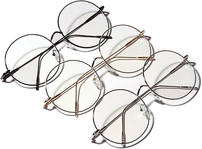 [QIKEJI] 丸メガネ 無地メガネ スタイリッシュ ユニセックス ステンレスフレーム 超軽量 黒 1個