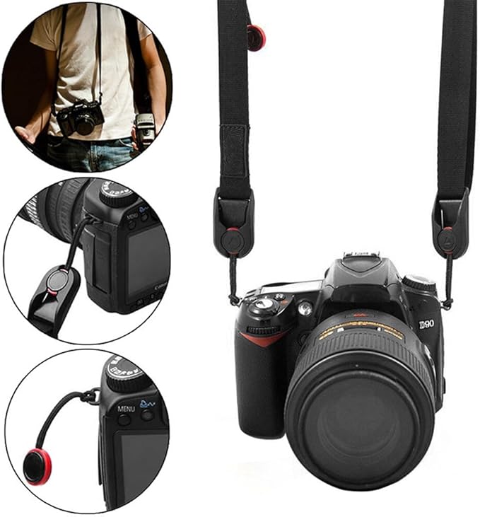 [QIKEJI] カメラストラップ 首掛け 落下防止、ユニバーサル、自由に長さ調整可能、ワンクリック分解機能を備えています カメラ、デジタルカメラ、一眼レフカメラなどに対応( ブラック )