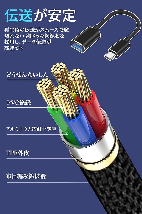 OTGケーブル Type-C 15CM 黒 Type-C 布地カバー OTG変換アダプター Thunderbolt3対応 iPadPro /Xperia XZ接続用 スマホ対応 マウス ゲームコントローラー接続可能