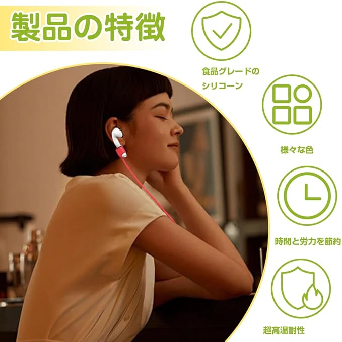 【高品質の素材】イヤホン ストラップは高品質のシリカゲル材質を用いて製作され、丈夫で耐久性があり、柔軟性があり、高弾性、高い引張強度は非常に耐久性があります。肌触りが良く、肌にダメージを与えずに快適に着用できます。安全な材質でが起きにくいです。