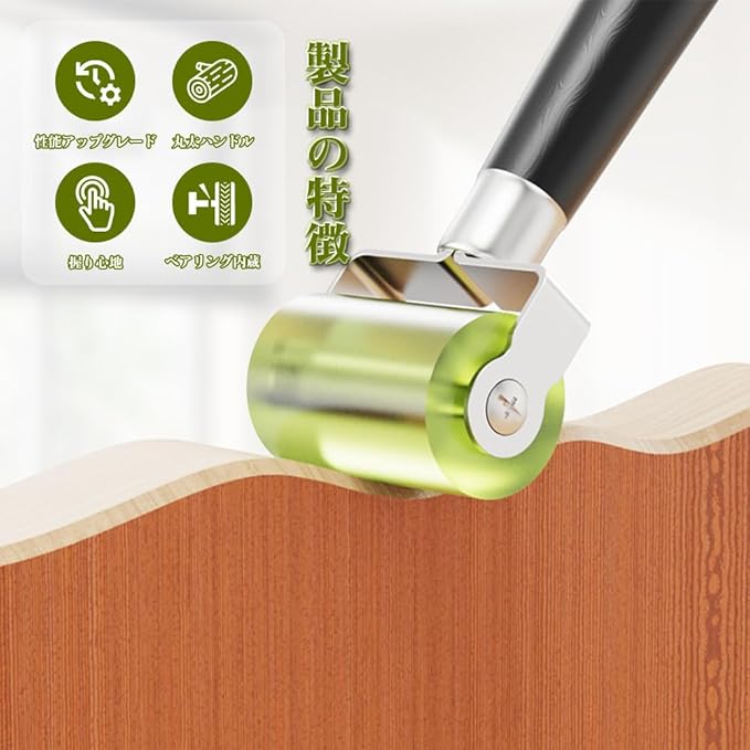 【使いやすさ】ゴム製のローラー部分が均一な圧力をかけられるため、気泡やシワを防ぎながら、しっかりと素材を密着させます。片手で簡単に操作でき、初心者でも扱いやすい設計です。