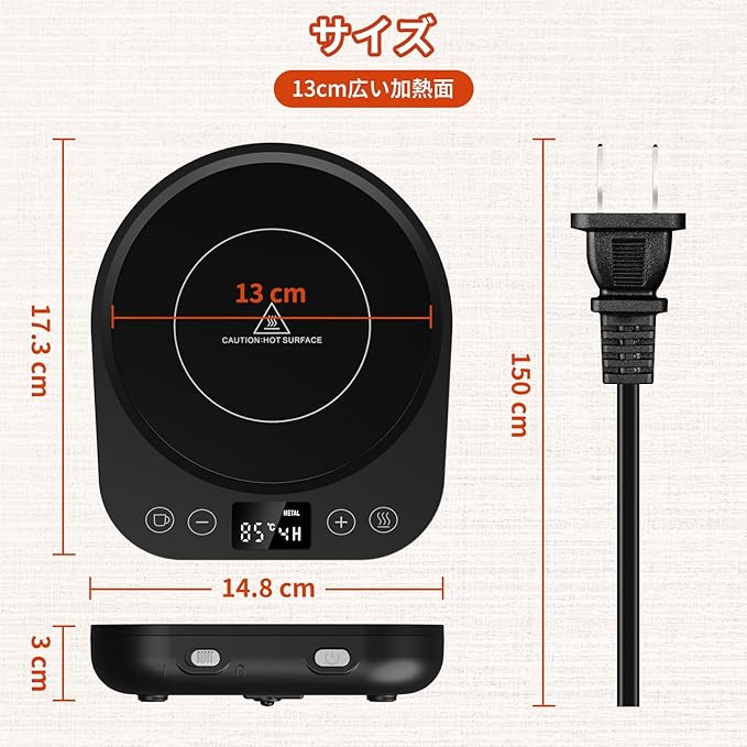 ☕【13cm広い加熱面 ほとんどのカップに対応】 カップ底の直径13 cm以内の耐熱グラス、セラミックカップ、ステンレスカップ、PPSU製哺乳瓶、ティーポット、箱入りミルク、開封した飲料缶、アロマキャンドルなどに対応可能です。保温効果はカップの素材によって異なります。カップの底が平らなタイプを選ぶとより速く温めることが可能です。ふた付きなら、保温性をより高める効果があります。