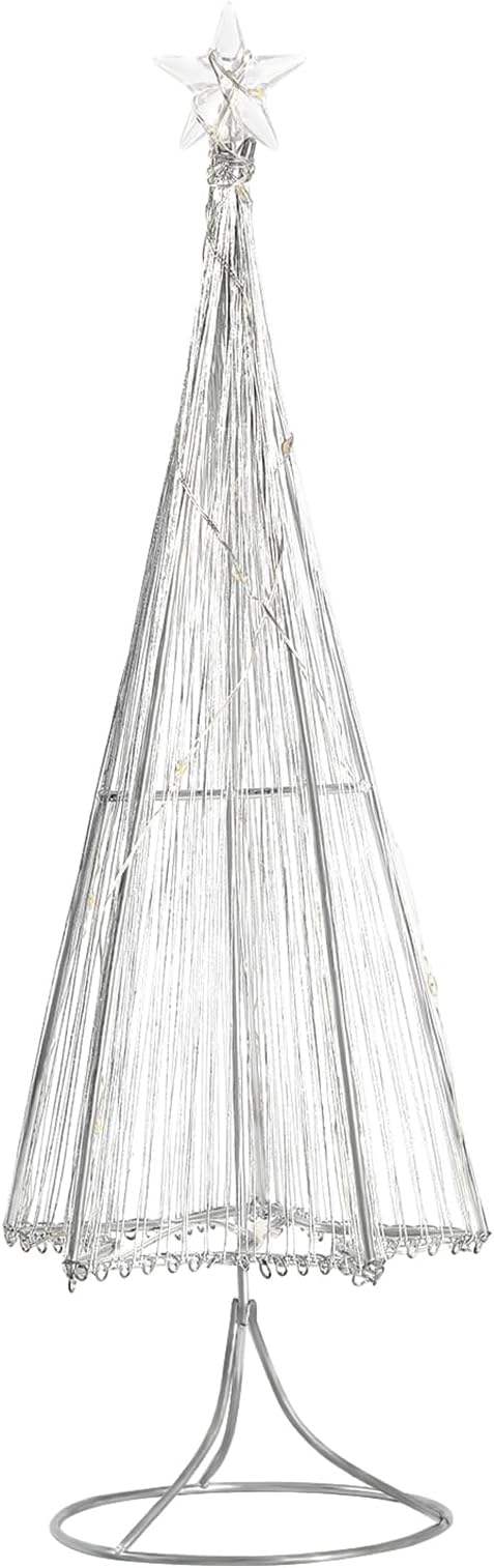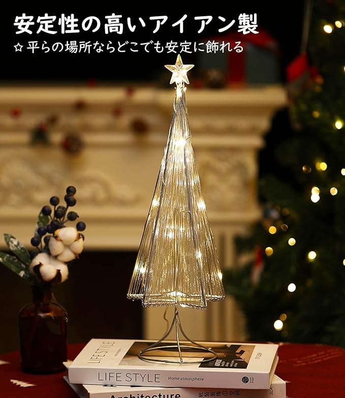 Lewondr クリスマスツリー 卓上ミニクリスマスツリー クリスマス飾り テデスクライト デコレーションライト 置き型 LED内蔵 松ノ木モチーフ 飾りライト インテリア 電池&USB給電式 星オーナメントライト クリスマスライト 母の日/誕生日/祝日/ハロウィン お祝いプレゼント Silver