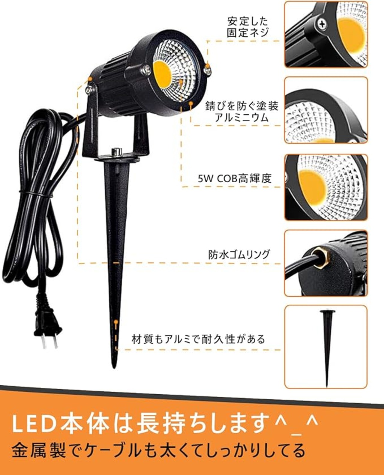 ★【明るさ保証】COB チップ採用して、普通のLEDチップより明るく、安定しています、寿命50000時間以上。400ルーメンで超明るく、均一な庭のスポットライト、長距離&広い放射範囲、柔らかい地上で集中照明のため、花壇に魅力的で、装飾的な輝きを追加し、暖かく、甘い屋外夜を提供することが出来ます。